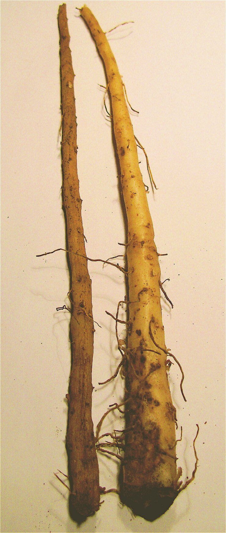 Moore (1842) records a number of names for these roots and interestingly uses bohn as a measure or point of reference against which to compare them: