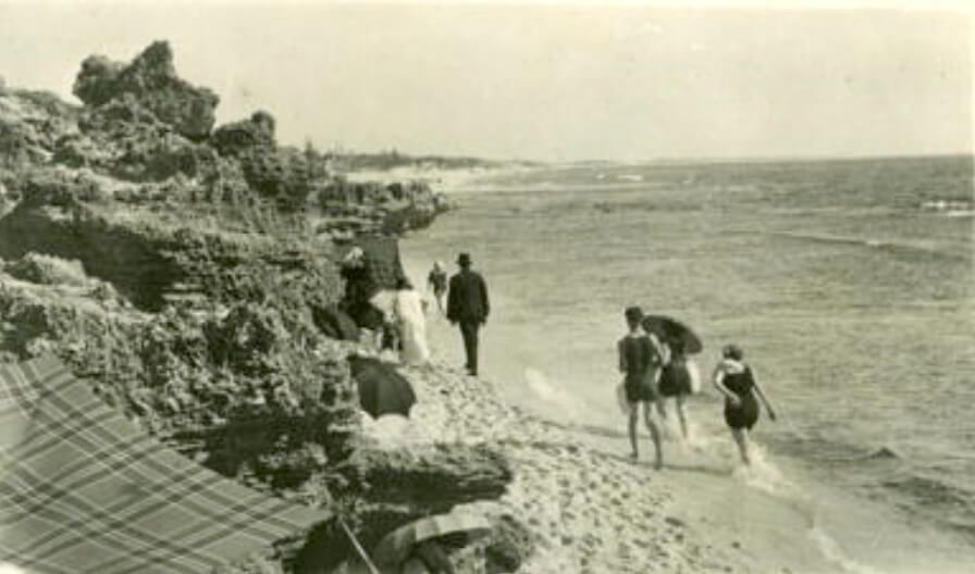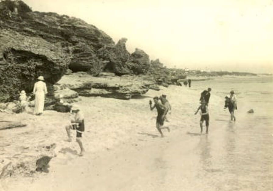 In an interview with Dame Rachel Cleland in 1999 she vividly recalled the caves that were located in the limestone rocks at Mudurup in the 1920’s. She said that she used to visit and play on Mudurup Rocks when she was a child about eight or nine years of age. She remembered one prominent cave, known by the children as ‘the pirates’ cave,’ which she described as having stalactite structures on the upper part of the cave entrance. She said they looked like teeth. She recounted how someone had told her that Mudurup was an important place to the local Aboriginal group and she remembered them fishing there (personal communication 1999).