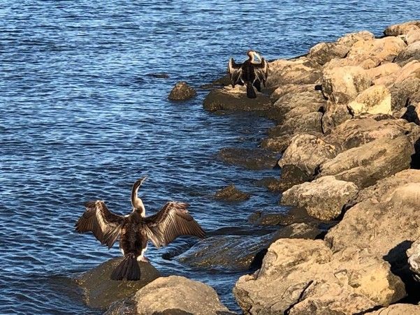 A pair of darters. South Perth Foreshore. Photo by Barb Dobson 2021