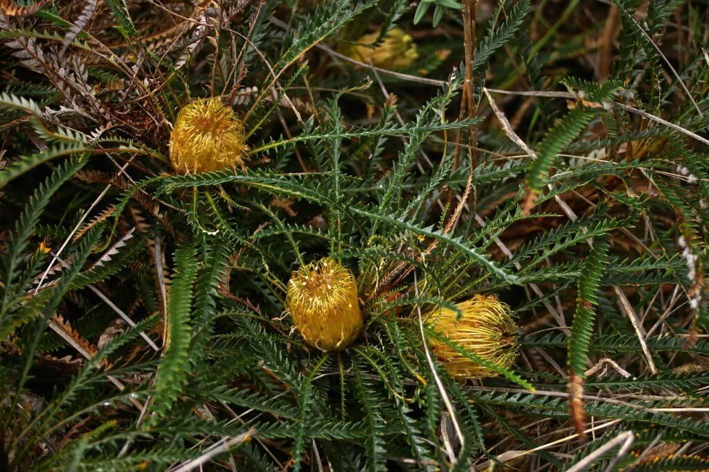 - It is unclear why Abbott (1985: 7-8) lists Moore’s budjan as Dryandra sessilis when Moore (1842:19) records budjan as “Dryandra Fraseri – a shrub.” Whether this is an oversight on Abbott’s part or based on his own re-interpretation of Moore’s work is unclear. The same indigenous name budjan probably applies to both shrubs D. nivea and D. fraseri as they both contain sought- after “nectar pots.”