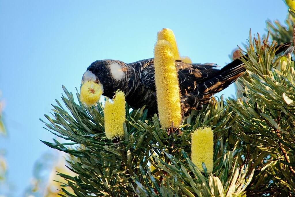 Rival avian competitors for nectar include a range of honey-eating birds, especially iconic members of the parrot family, such as the Western rosella (Platycersus icterotis), red-capped parrot (Purpureicephalus spurius) and the Australian ring neck (Barnardius zonarius). These brightly coloured, noisy nectar and insect predators herald the start of the mungite season. Honey-eaters, wattle birds and other small birds also raid the nectar. Even the black cockatoos and Western corellas that feast on the Banksia seeds and insect larvae found in the bark and fruit, also consume the flowers and nectar (see Plates 3-7).
