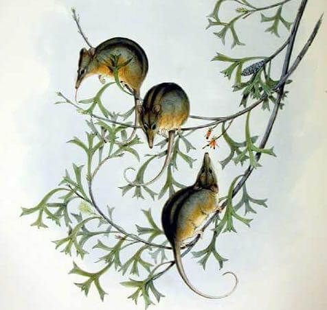 The Noongar name commonly attributed to the pygmy possum is mundarda (Menkhorst and Knight 2001: 88). This name derives from the early records of Gilbert, Grey and Moore. For example, Grey (1840:89) records mundarda as ‘a small species of mouse, which is generally found in the tops of the Xanthorrhoea’ and Moore (1842: 68) records mandarda as ‘a mouse [of which] there are several indigenous species.’ Early newspaper accounts refer to the ‘pouched honey mouse,’ ‘brush-tailed pouched mouse’ or ‘tree mouse’ and the ‘door-mouse possum.’ These seemingly refer to the honey possum, brush-tailed Phascogale and the pygmy possum.