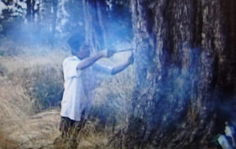 Mark sat bent over a large tree stump with his head resting in his hands. ‘Hey what’s the matter I asked…are you hurt’? He looked up at me, his face pale and streaked with tears. ‘No, I don’t think so.’ He said despondently ‘I grazed my arm when I slipped down this embankment.’ He held out his right arm for me to see a deep graze near his elbow. There was very little blood or dirt on the wound, in fact it looked as if it had already been cleaned ready for dressing. ‘That looks fine to me’ I said ‘No pain’? ‘No,’ he replied. I asked him if he had cleaned the wound? ‘No,’ he answered hesitantly. ‘It was a little old woman who washed my arm and put some medicine on it.’ ‘What little old woman’ I inquired? ‘They left as soon as you arrived,’ said Mark. Things were starting to verge on the incredulous, so I abruptly asked ‘What are you talking about’?
